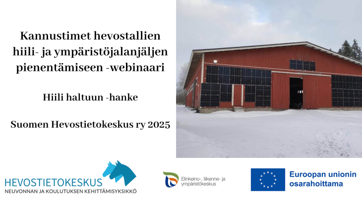 - Kannustimet hevostallien hiili- ja ympäristöjalanjäljen pienentämiseen -webinaari