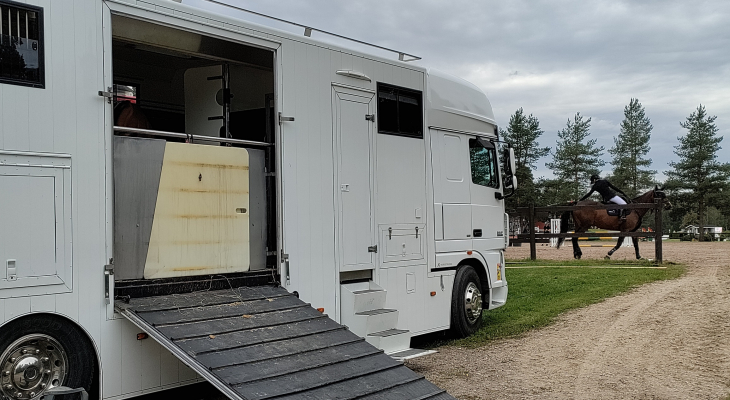 Kuvaaja 3. Hevosenomistajan on tärkeää muistaa, että eri talleilla asuvien hevosten yhteiskuljetukseen sisältyy mahdollisuus tarttuvien tautien leviämisestä hevosten välillä ja tallilta toiselle. Tautiriskiä pienennetään mm. sillä, että hevosauto tai traileri pestään huolellisesti ja tarvittaessa desinfioidaan kuljetusten välissä.