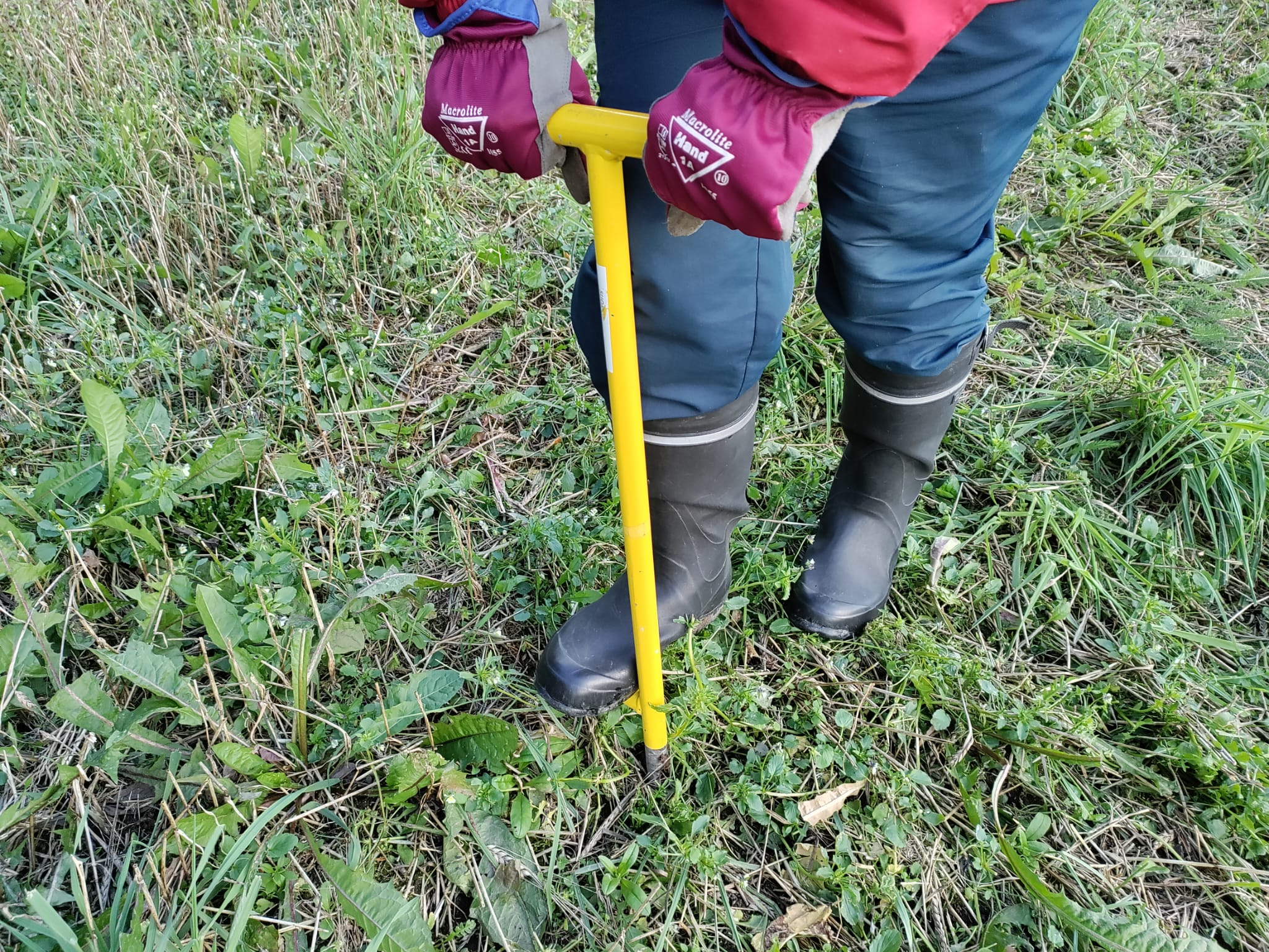 Kuva 2: Osanäytteet kerätään samaan astiaan. Mahdolliset roskat ja kivet poistetaan osanäytteistä.