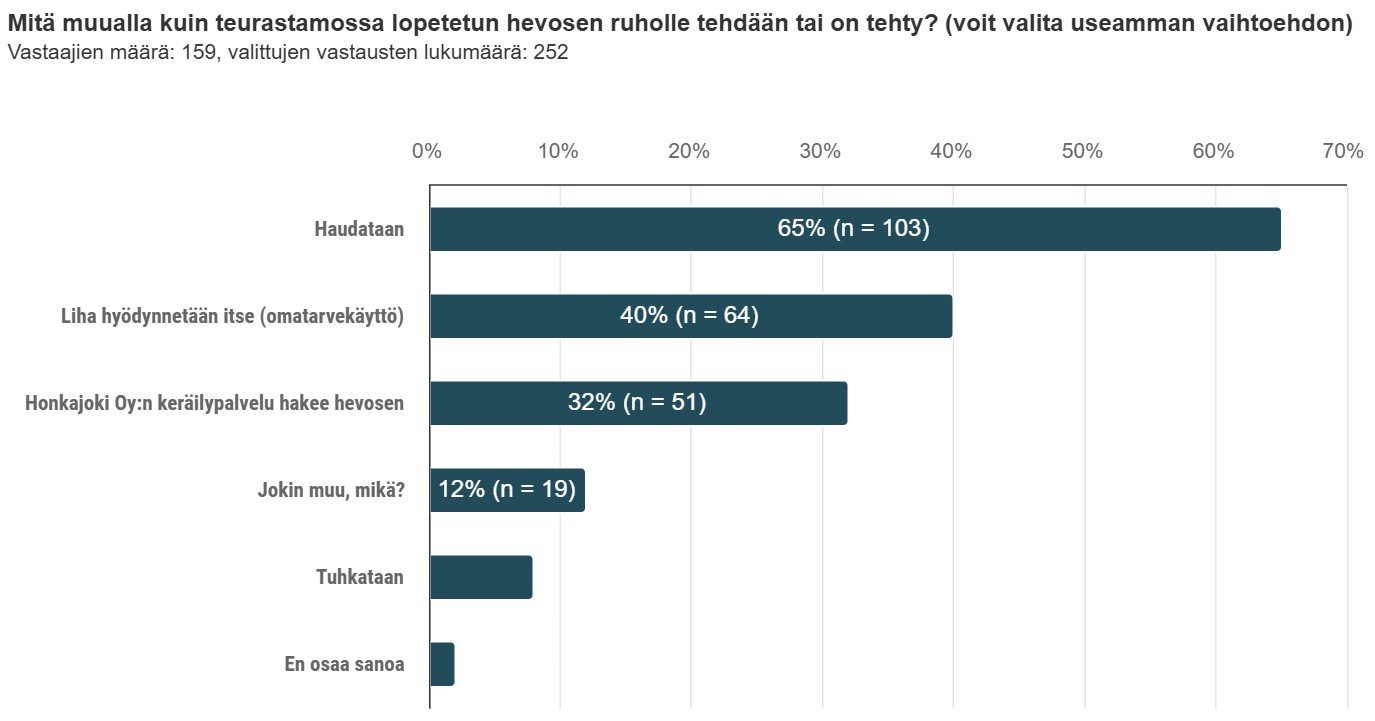 Kuva 4. Hevosenomistajien valitsemat vaihtoehdot muualla kuin teurastamossa lopetetun hevosenruhon käsittelemiseksi.