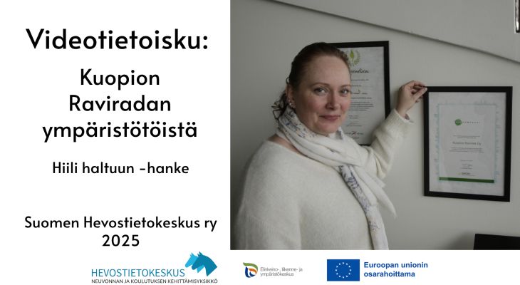 Videotietoiskussa Kuopion Ravirata oy:n toimitusjohtaja Marita Huttunen esittelee raviradalla tehtyjä ympäristötöitä. Näiden taustalla on Kuopion raviradalle myönnetty Ekokompassi-sertifikaatti, joka on tuonut toimintaan suunnitelmallisuutta.