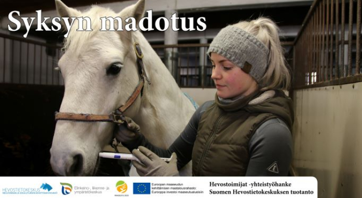 Hevosten terveyden ja hyvinvoinin kannalta on tärkeää huolehtia asianmukaisesta loishäädöstä. Varsat ja nuoret hevoset ovat erityisen alttiita loistartunnoille! Tarha- ja tallihygienilla on keskeinen merkitys tartuntojen ehkäisemisessä! Hevostietokeskuksen videossa erikoiseläinlääkäri Katja Hautala selvittää syksyn madotusasiaa.